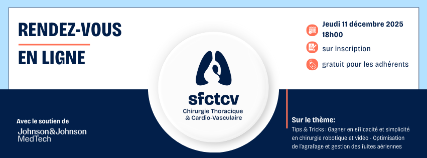Recommandations SFCTCV & SFAR sur la RAAC en chirurgie pulmonaire La SFCTCV et la SFAR ont publié une liste de recommandations sur la réhabilitation améliorée après lobectomie pulmonaire. L’objectif de ce travail commun est d’établir des directives sur l’optimisation de la prise en charge des patients opérés de lobectomie pulmonaire et notamment sur leur réhabilitation […]